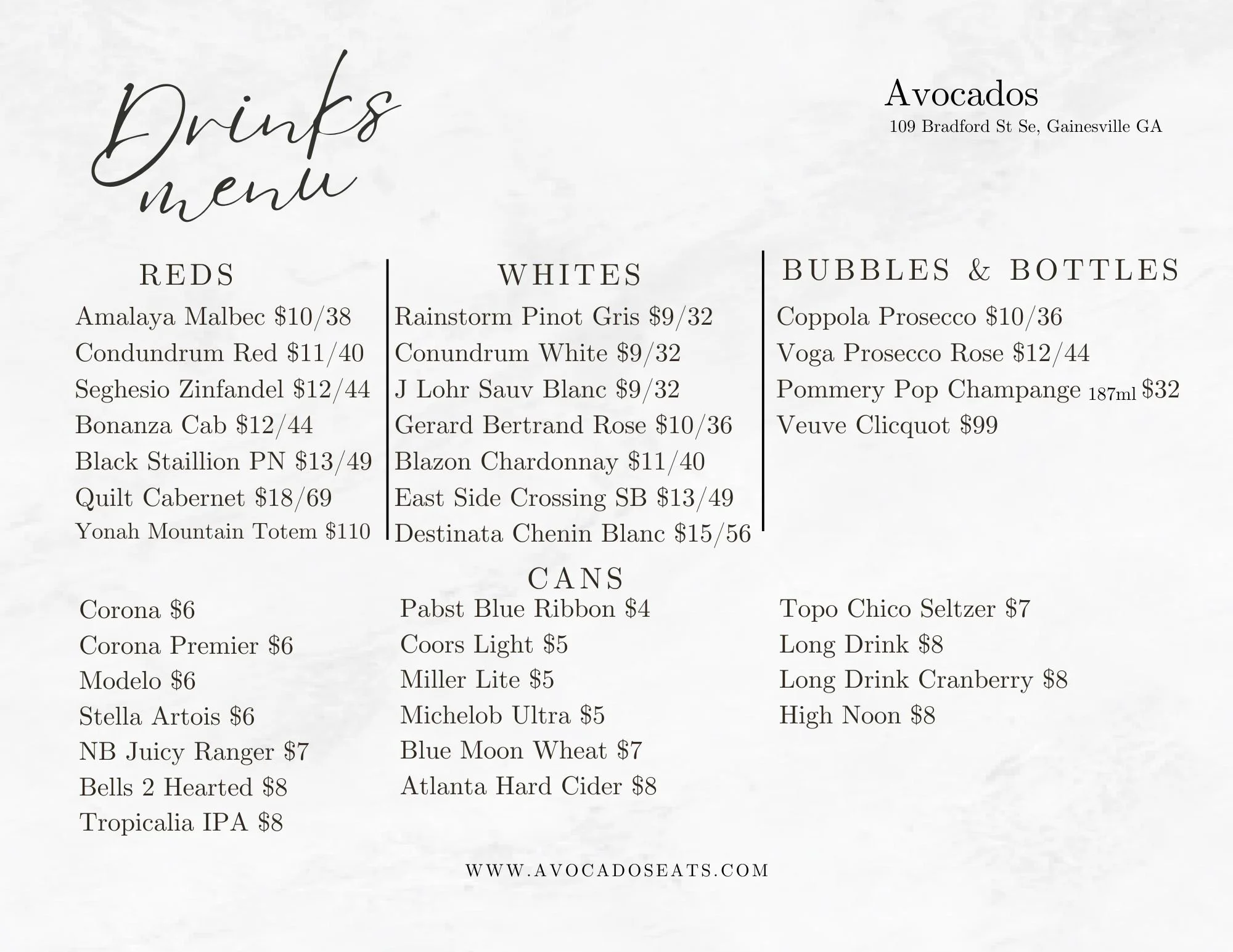 We like to keep things as fresh and local as possible which means adjusting our palette with the weather and seasonal foods.